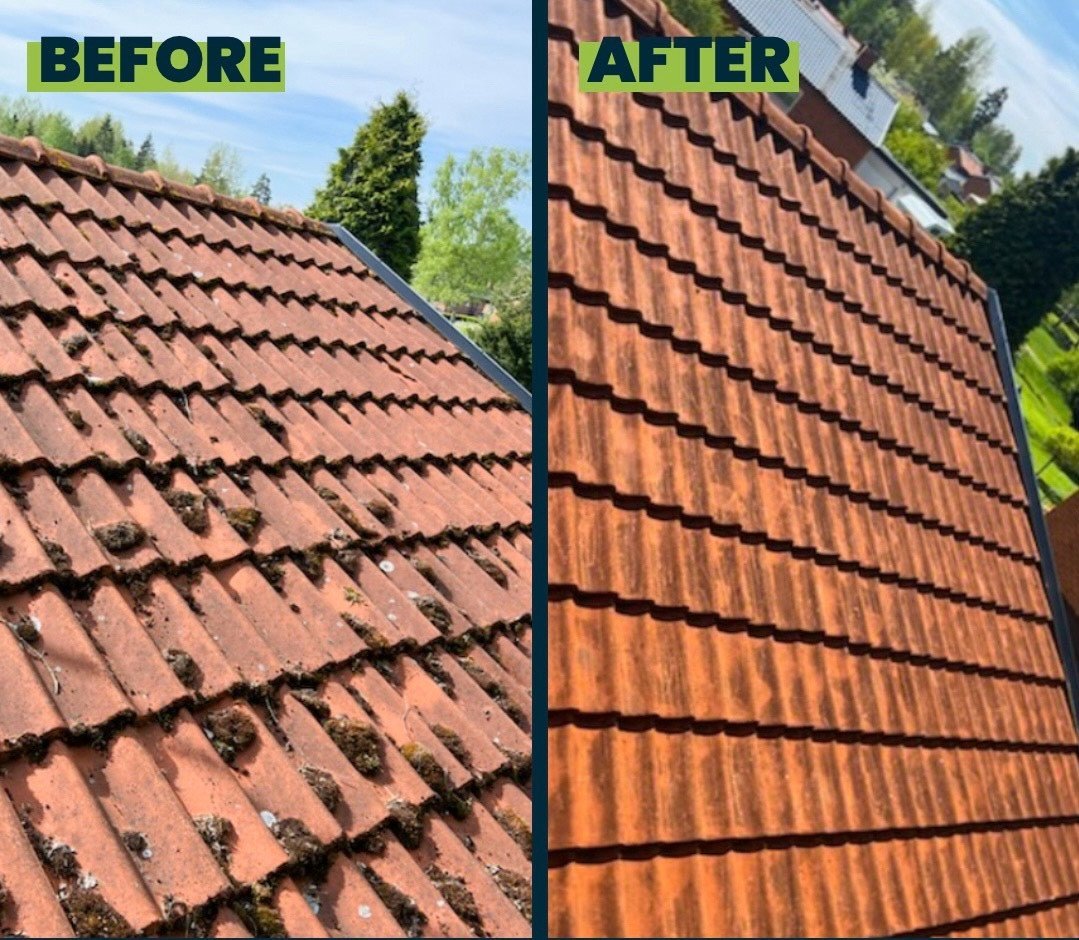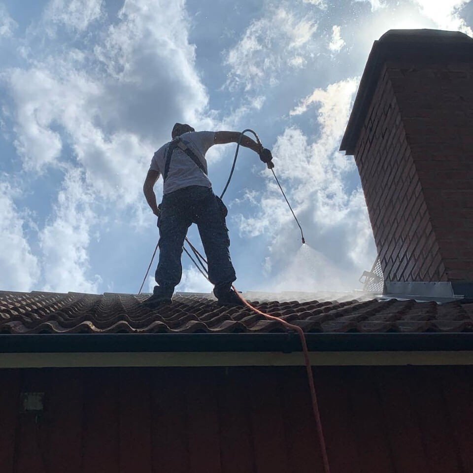 Nu är det dags att göra rent ditt tak. Vi hjälper dig att bli av med mossa, alger, lav och annan påväxt. Dessutom behandlar vi taket med ett medel som håller det rent från mossa i 4 år!