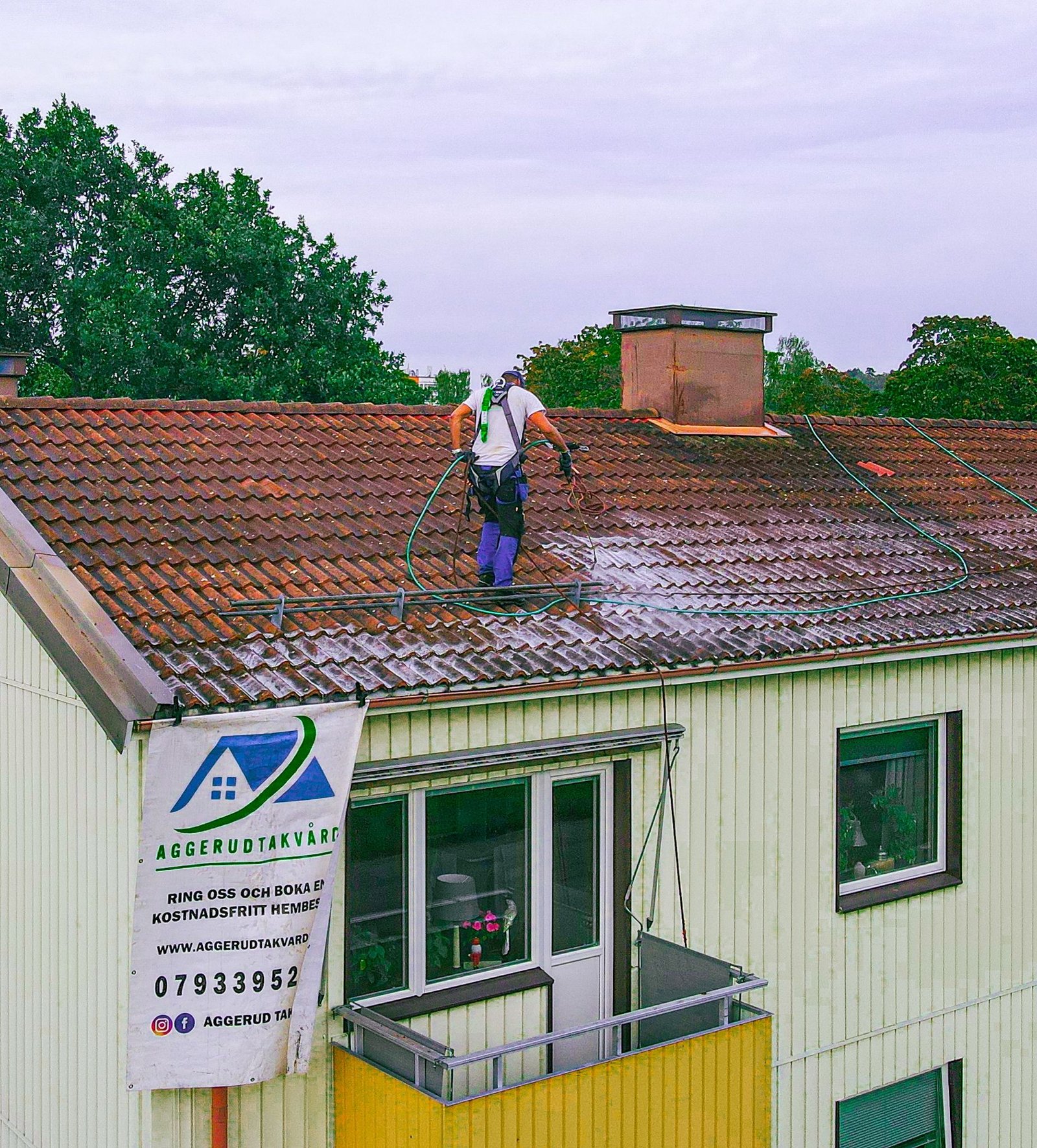 Om du har mossa eller annan påväxt på ditt tak så är första steget att ringa eller maila oss på Aggerud Takvård.