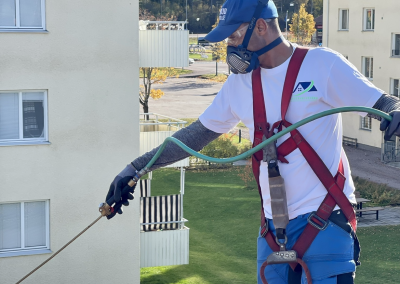 Genom att tvätta bort mossan och påväxten minskar du också risken för frostsprickor när temperaturen går under nollan.